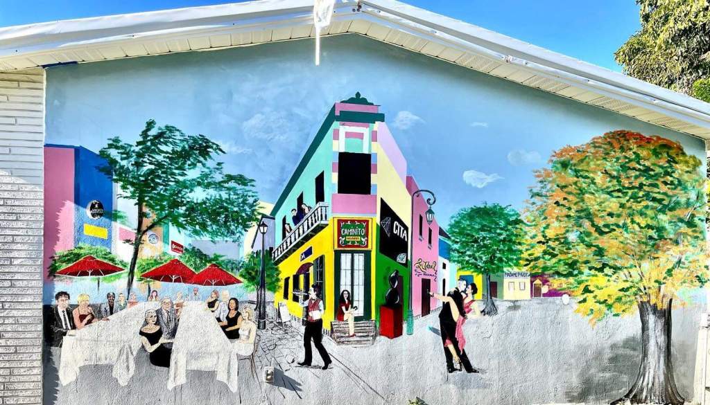 “I am currently working on a mural at a house in the Miller area,” says Noriega. “It’s about a famous neighborhood in Buenos Aires, Argentina, called Caminito. Caminito is a street museum and a traditional alley, located in La Boca, it inspired the music for the famous tango ‘Caminito,’ composed by Juan de Dios Filiberto. A few of the current Tango celebrities will be portrayed in the mural.”