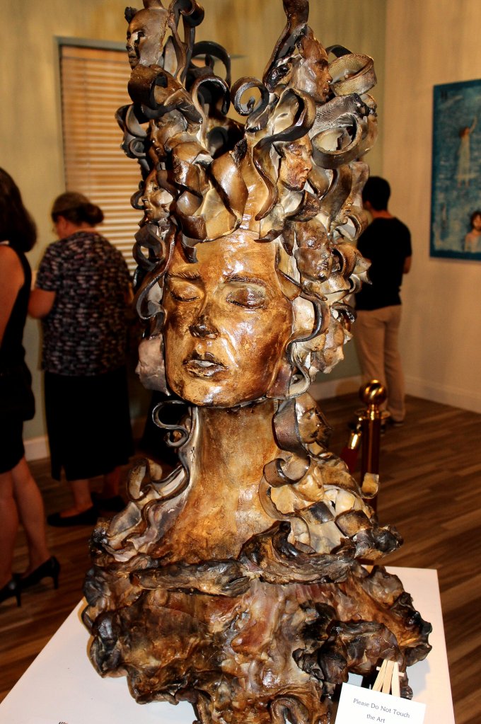 A few years ago her art became a way of life in a very literal sense, when battling breast cancer. She credits her survival and recovery to her determination to live, and to keep doing the creative work that is so much a part of her. Her paintings and sculpture from that period are striking for the raw emotion they convey. And now she is entering a new phase of art expression that she is excited about.