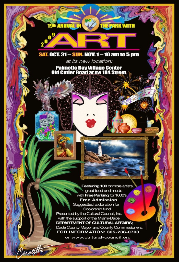 His talent went beyond mere advertising work, as we all later discovered. For the Village of Palmetto Bay’s annual event, Sunday in the Park with Art, Fred was commissioned to create the posters used to promote the events, and they were works of art themselves, alive with vibrant colors and intricate designs. They became a part of the event and not just advertising.